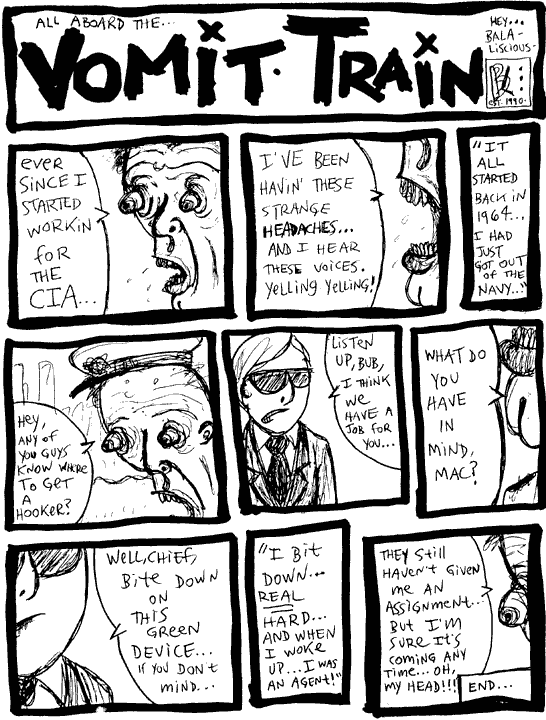 "All Aboard the Vomit Train" © John Freeman ![]() Back to Uncle Sloppy's Pleasure Circus |